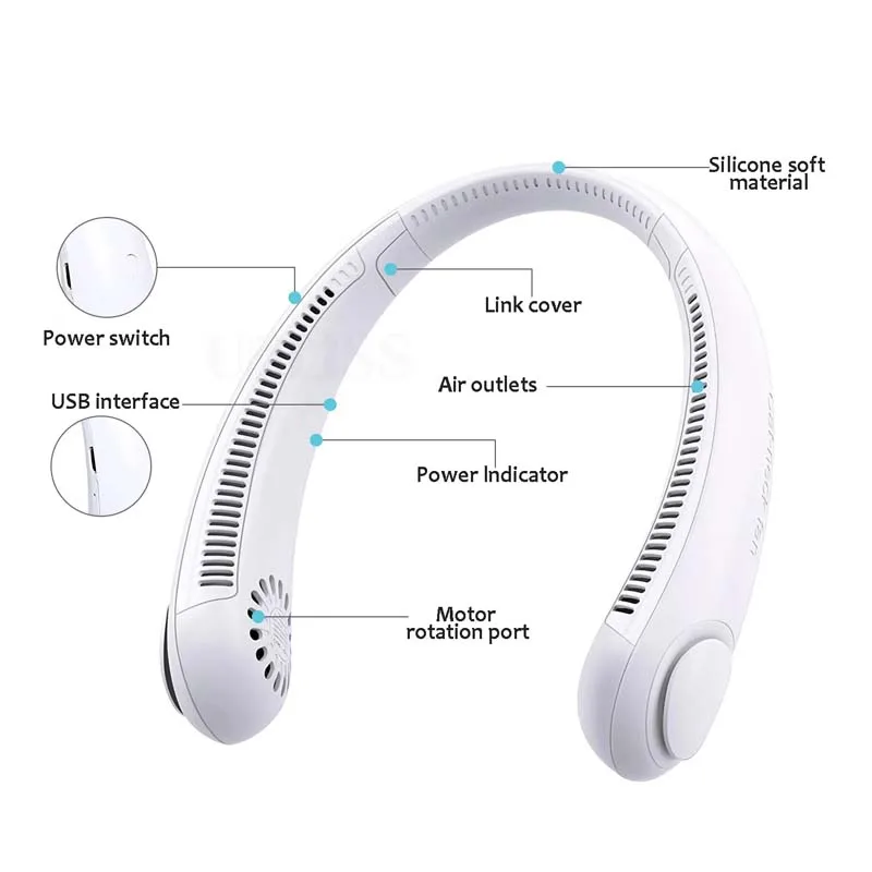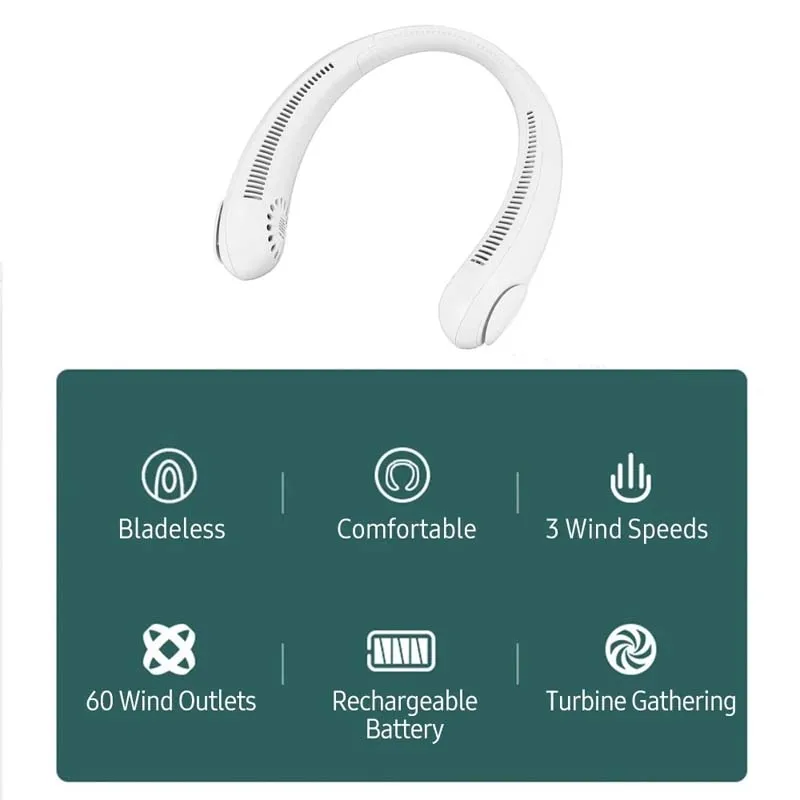 Neck Fan New Mini Neck Portable No Bladeless Hanging Neck Rechargeable Air Cooler 3 Speed Mini Summer Sport Fan.